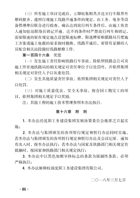 沈陽工務(wù)集團(tuán)《鐵路既有線施工技術(shù)管理的暫行辦法》