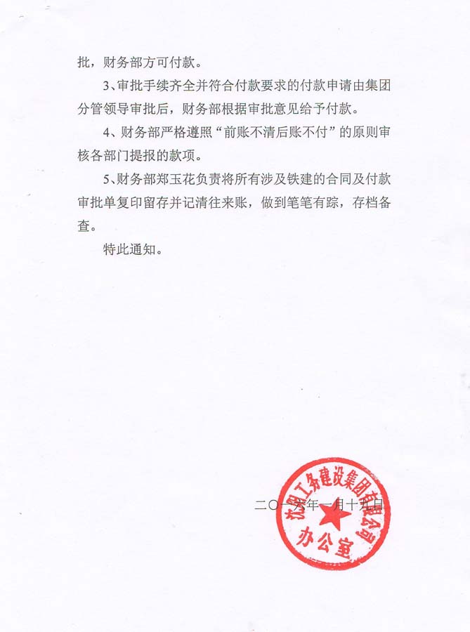 工務集團2016年辦通字第04號《關于規(guī)范請款審批流程的通知》